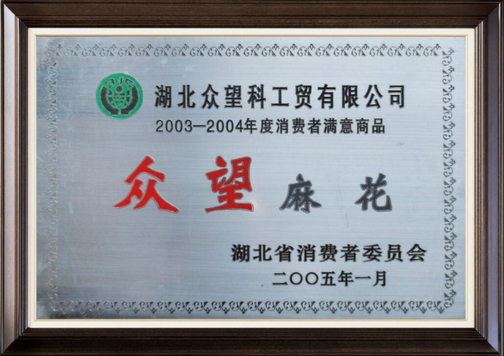 2003-2004年度湖北省消費(fèi)者滿(mǎn)意商品